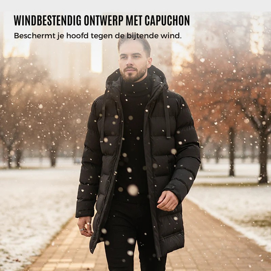 GRATIS VERZENDINGGevoerde herenjas met capuchon, halflang