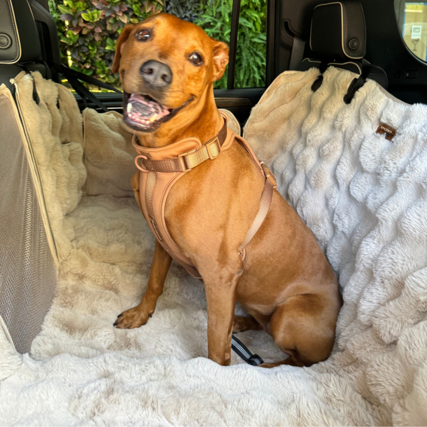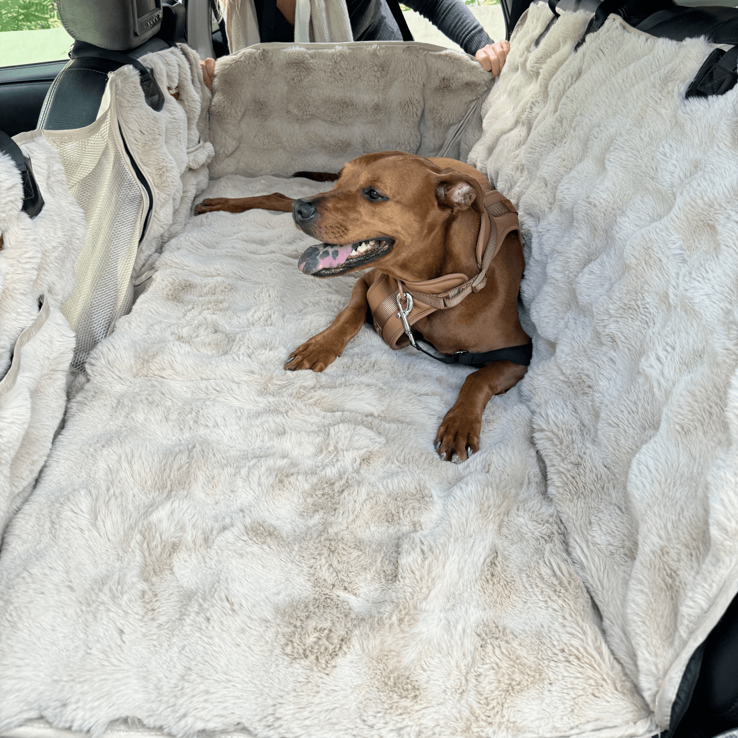 Bekijk hoe onze harige vrienden comfortabel en beschermd reizen met de Zycon® Luxe volledige achterbankbeschermer.