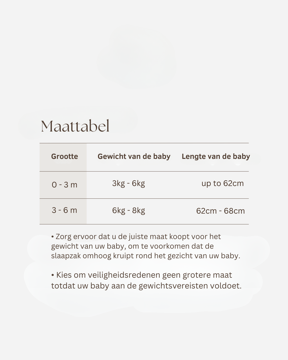 Geschikt vanaf de geboorte. Met deze slaapzak heb je de keuze om je pasgeborenen in te bakeren of met de armen vrij te laten slapen.