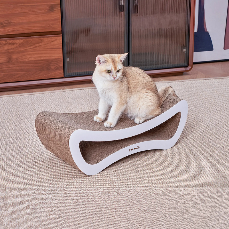 Onze ergonomische krabpaal beschermt niet alleen uw meubels tegen krassen, maar biedt uw kat ook een ideale plek om te krabben. Deze kartonnen krabpaal is dubbelzijdig, waardoor de levensduur aanzienlijk wordt verlengd. Het ergonomische ontwerp sluit naadloos aan bij het natuurlijke gedrag van uw kat.