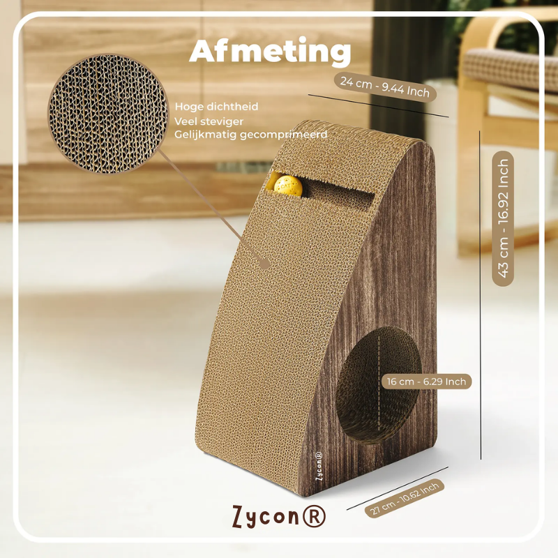 Onze ergonomisch ontworpen krabpaal voor katten is gemaakt van stevig, geperst karton. Deze krabpaal is ontworpen om uw meubels te beschermen en tegelijkertijd te voldoen aan de natuurlijke krabbehoeften van uw kat. Het voegt een stijlvolle, functionele touch toe aan uw huis, biedt zowel comfort voor uw kat als een mooie aanvulling op uw interieur.