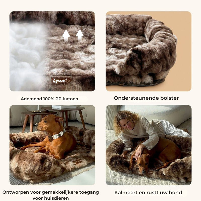 Geef uw hond het cadeau van echte rust. Ons luxe orthopedische bed is gemaakt van ultrazacht imitatiekonijnenbont en een dikke orthopedische schuimbasis en is ontworpen om uw huisdier comfortabel te laten liggen. Het ondersteunt zachtjes