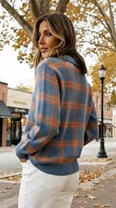 De Zycon®-trui combineert het comfort van een gebreid kledingstuk met de verfijnde look van een overhemd met knopen. Hij heeft een gestructureerde kraag en knopen aan de voorkant om uw dagelijkse outfit een vleugje elegantie te geven. Het zachte ruitpatroon in warme blauwtinten en roestbruine kleuren geeft hem een tijdloze seizoensgebonden charme, waardoor hij perfect is voor herfst- en winterdagen.